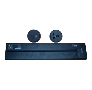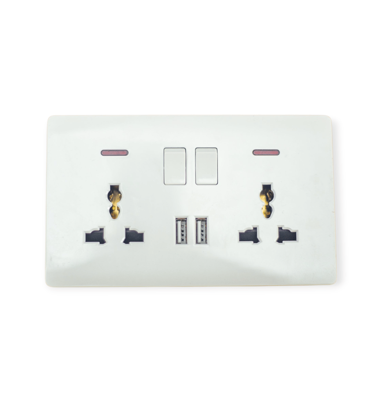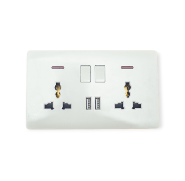 A dual power outlet equipped with two USB charging ports for phones and devices. Includes indicator lights for easy visibility