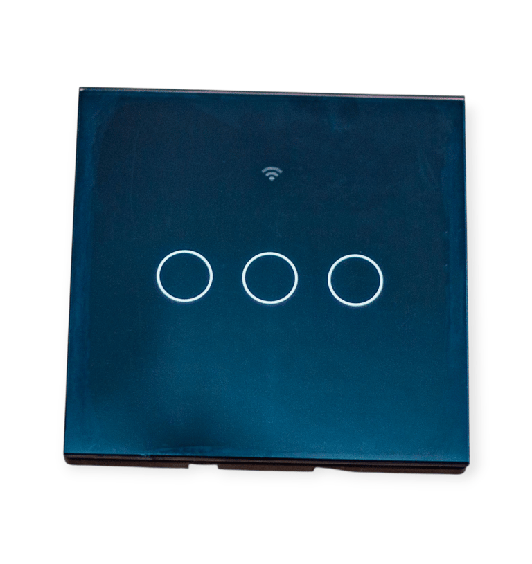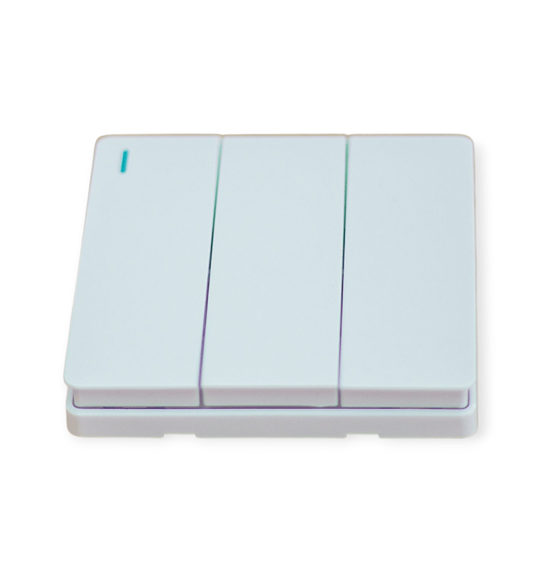 A triple-switch wall unit used to control three independent lighting points efficiently