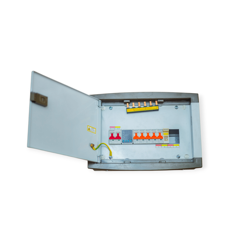 A protective distribution board designed to manage and safeguard electrical circuits from overloads and short circuits
