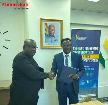 Mannschaft Engineering and Infrastructure Systems Ltd has signed a Memorandum of Understanding with the Petroleum Hub Development Corporation to support the development of Ghana’s Petroleum and Petrochemicals Hub.